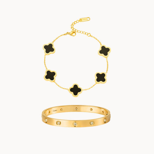 Cartier Love bangle with Black clover bracelet