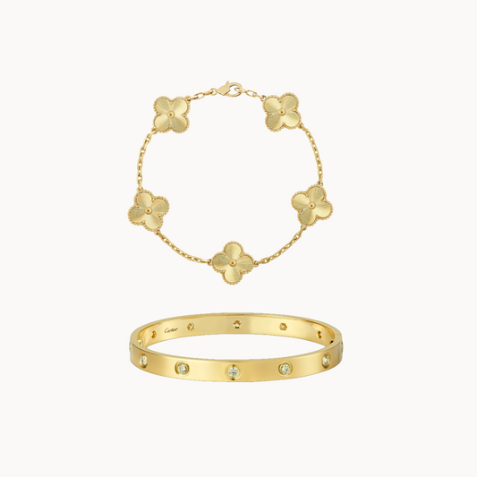 Cartier love bangle with golden clover bracelet